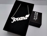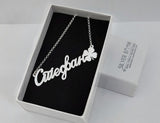 Ogrlica je izrađena od srebra finoće 925. Ogrlice izrađujemo po porudžbini, tako da su dostupna sva imena na latinici i ćirlici, pisano ili štampano. Pored imena se mogu dodati srce, zvezdica ili detelina. Dužina ogrlice je 45cm plus dužina imena 3-4cm.